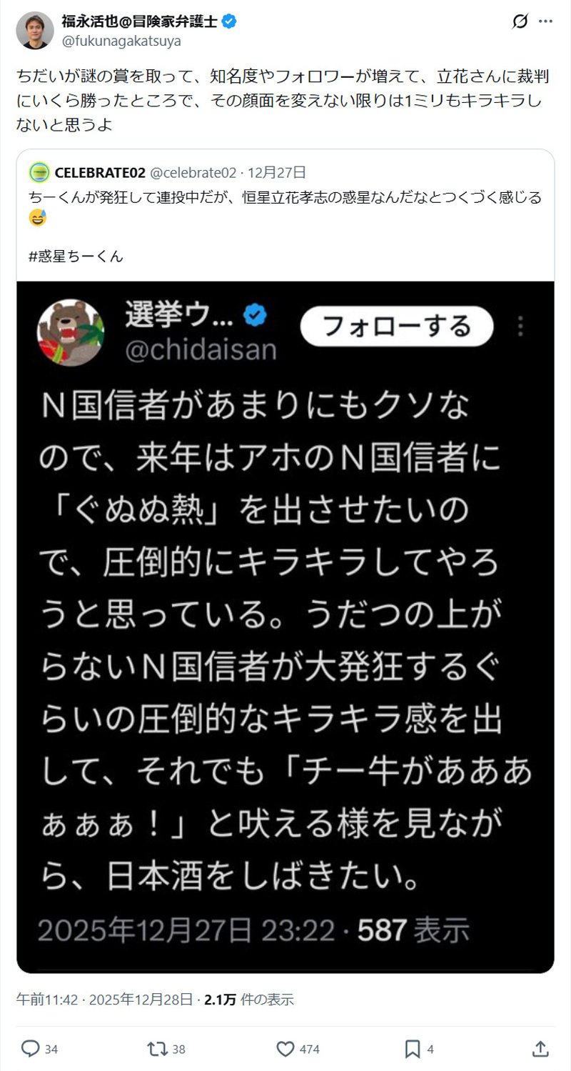 とっても寒い神戸拘置所で、尊師・立花孝志が逮捕拘留されても、その弟子や信徒たちによる名誉毀損は続いており、今年は僕が原告となる裁判も増えてくるのではないかと考えています。