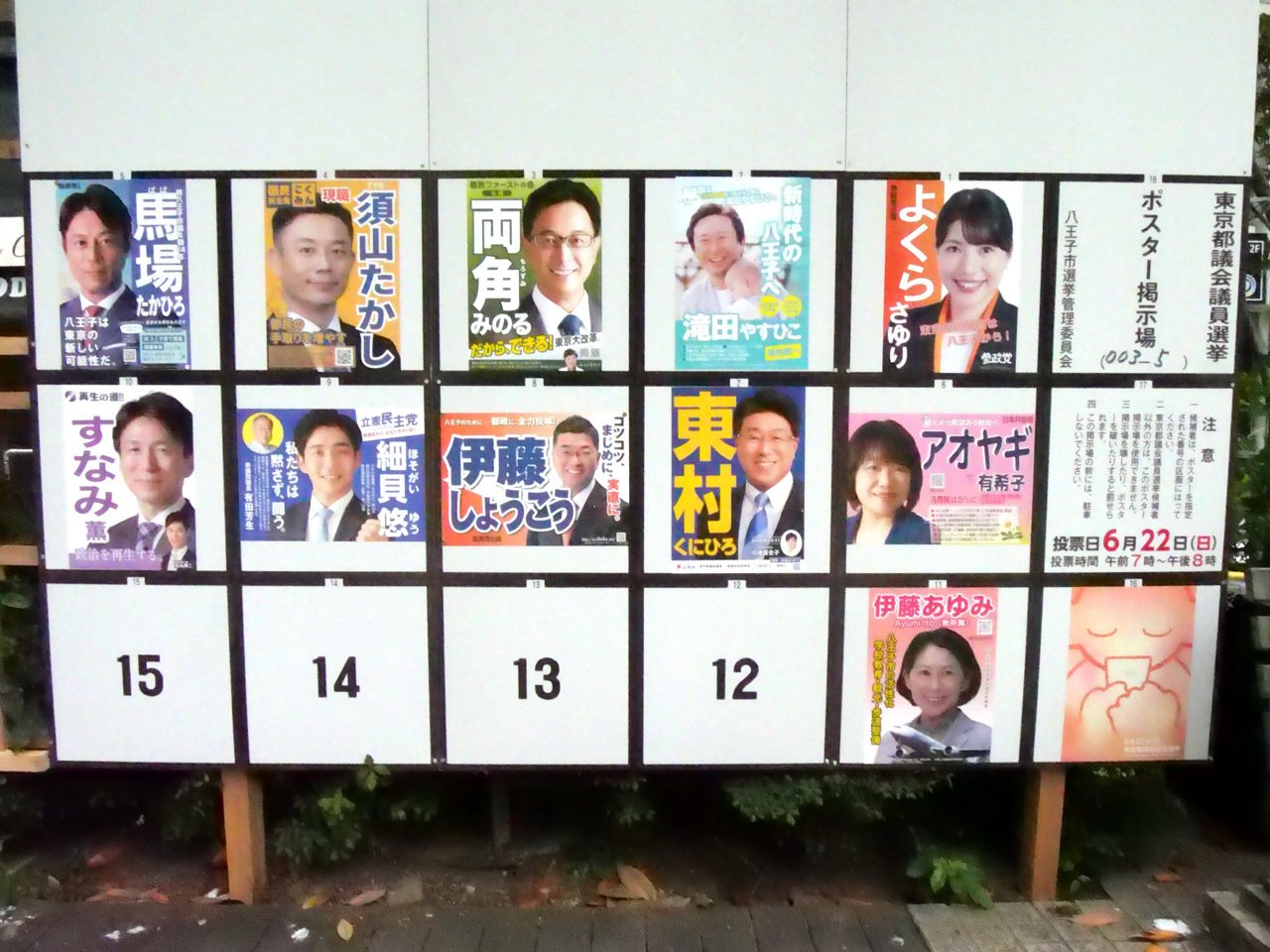 さて、八王子市選挙区は、定数5に対して11人が立候補。なかなか取材が難しかったのですが、ちょっとだけ面白いシーンを撮影することはできたので、ある意味では「ネタ回」だと思います。
