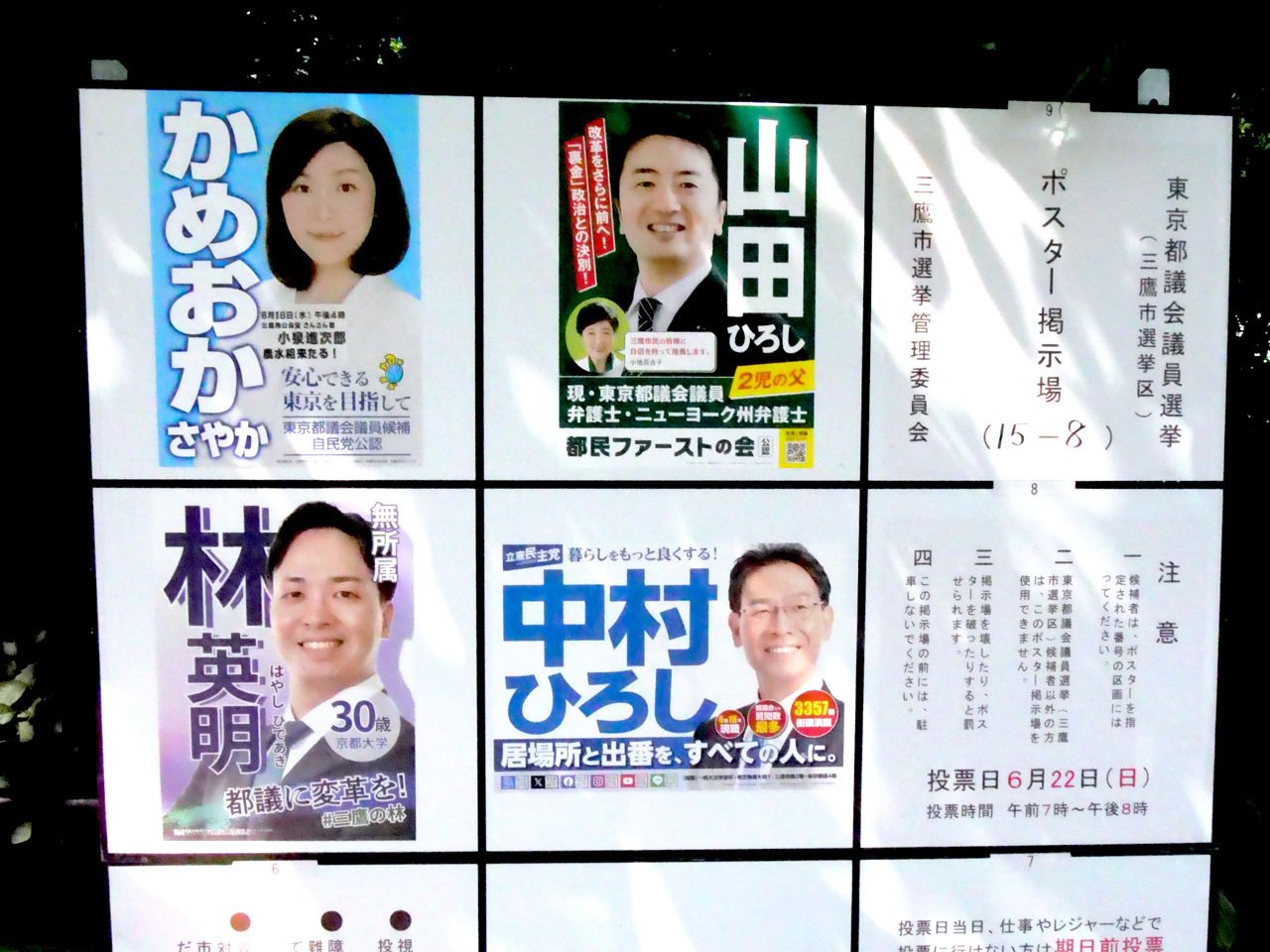 6月13日告示、6月22日投票で、東京都議選が行われました。