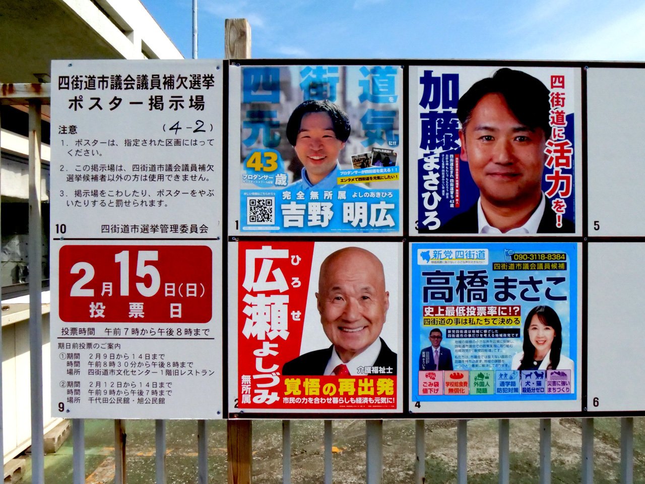 2月8日告示、2月15日投票で、千葉県の四街道市議補選が行われることになり、欠員1に対し、4人が立候補しました。この中には、絶対に投票してはいけない反社会的カルト集団「NHKから国民を守る党」の候補者がいましたので、絶対に投票してはいけない地雷が混ざっていました。