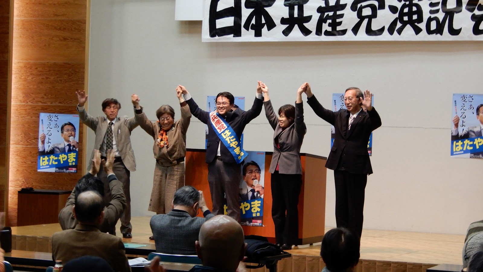 冒頭の方が話されたように、くらしが楽ではないもとで払っている税金なのに私物化されていたなら腹が立つのも当然です。それなら税金も返してほしいくらいの思いになるのだって当然です。消費税だって「国に金がない」ことを口実に増税したくせに!演説会では北斗市・七飯町・森町など近隣自治体からとともに、わざわざ八雲町・佐藤智子町議も駆けつけてくれました。昨日からお世話になった森町・壇上美緒子、七飯町・上野武彦、北斗市・前田治の各議員とそろって最後は「がんばるぞ」。司会は江差町・小野寺真議員が務めてくれました。
