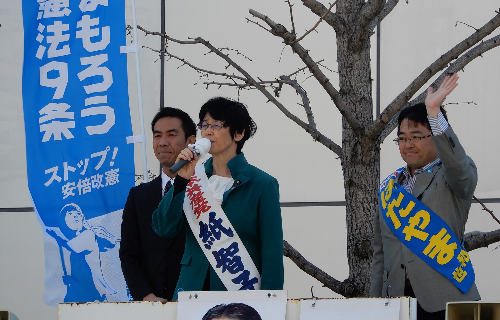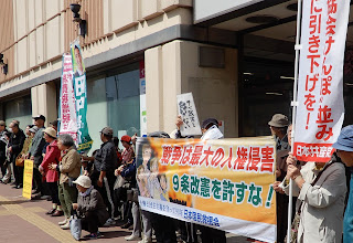 天皇即位などの祝賀ムードを醸成して、安倍首相が「新しい時代に新しい憲法を」など言い出すのは必至。しかし平和憲法を壊す安倍政権を変えてこそ、新しい時代が開かれます。その変える力は、やっぱり市民と野党の共闘! 今日の集会とデモ・パレードを通じて、その思いを強くしました。党として宣伝もおこないました。写真は西区の地下鉄琴似駅周辺にて、田中啓介市議とともにマイクを握ったもの。駆けつけてくださった党員や支持者のみなさんの激励も力になりました。