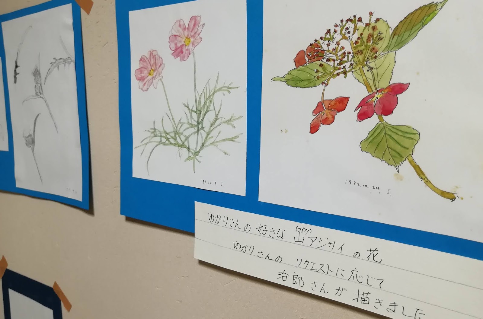 先日、お孫さんが生まれたばかりで、誕生をお喜びになったんだろう姿が目に浮かびます。町議をされている洋一郎さんの、お父さんへの思いもしんみりと伝わりました。治郎さんのスケッチや山岳用品、研究成果なども飾られていて、一つ一つから治郎さんの息吹が伝わってくるようでした。