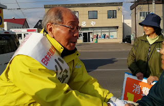 「昨年の市長選からだから疲れもあるけど、あと少しだからがんばるね」と、選対事務所でも声があがりました。マイクを使っての訴えも明日1日を残すのみ。投票箱の蓋が閉まるまでも、あと40数時間となりました。明日は江別市や当別町・新篠津村へ。私の応援もラストスパートです!