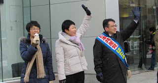街頭からの訴えも、買い物に来る若い世代が多い場所だったもののチラシを受け取る方もチラホラ。自分のくらしや仕事のかかわりからでも安倍政権の現実を見てほしいし、いっしょに政治も社会も変えていきたい。とても強い寒風でしたが、熱い思いは伝わったでしょうか。他党の方々からのあいさつも、ありがたいものでした。こうやって足を運んでくださるのも何度目かになり、こういう積み重ねが大事なんだなと実感します。そう、信頼は積み重ね。政党が違うんだから、こういう努力をしていかないと。