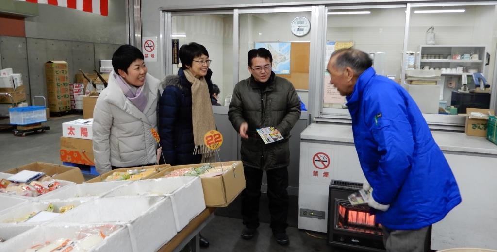 昨年、サケ・イカ・サンマという北海道を代表する水産物の水揚げが軒並み減少という厳しい年でした。漁協を中心に水産資源の管理はおこなってきているものの国際的な乱獲が心配で、政府の「漁業外交」のあり方が問われています。海水温の上昇という気候変動の影響も心配されます。自然災害の多発化・大規模化は、農作物にも大きな打撃を与えてきました。地球環境は明日には変えられないけれど、政治の取り組みは明日からでも強化すべき。食と自然は切り離せないし、命とも切り離すことはできません。市場へ来ると、いつも「生きることの基本」を大切にしなければと痛感します。