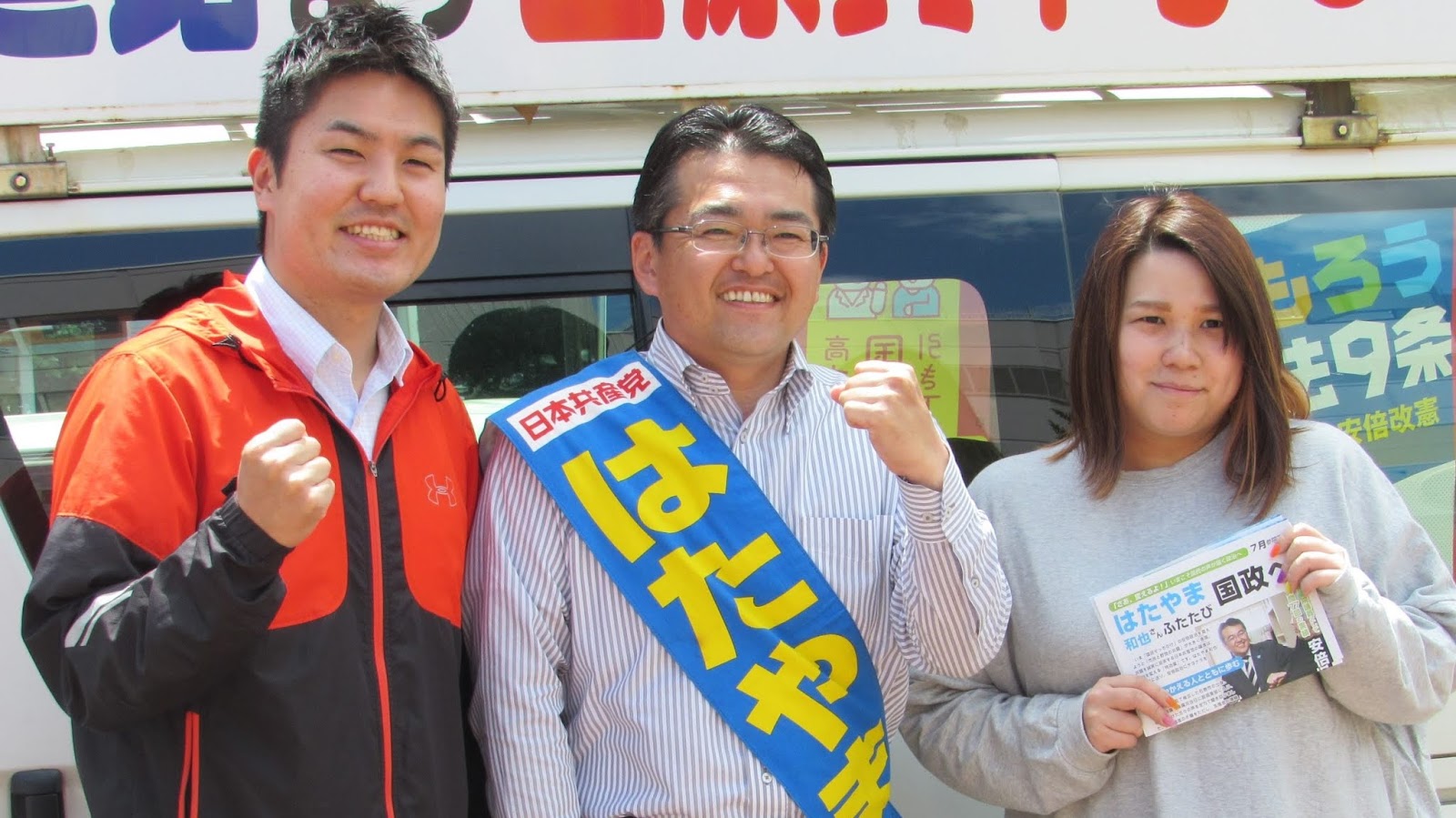 今日は札幌東区・北区をまわり、終了後に自宅近くで雑誌の写真撮影も。スカッとした天気が気持ちいい1日でもありました。市議候補だった平岡大介さん(東区)・小室正範さん(北区)も応援に駆けつけて、元気な姿を見せてくれたことも嬉しいことでした。平岡さんのパートナーがアナウンサーも務めてくれて、せっかくなので記念に1枚。本当にありがとうございました。
