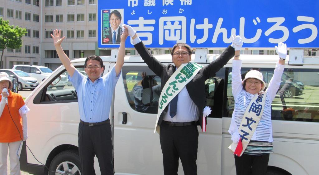 早く予算委員会を開いて、安倍首相は国会で説明責任を果たすべき。憲法については「野党は議論から逃げている」と言いながら、自分の都合の悪いことからは首相自身が逃げているのではないのでしょうか。美唄市は5期目めざす吉岡文子候補、2期目めざす吉岡けんじろう候補とで2議席維持をめざします。文子さんは、いつも明るく分け隔てなく誰とでも接する議員で、私は勝手に「美唄の太陽」と呼んでいるほど。長年訴えてきた子どもの医療費無料化が、小学校卒業時まで拡充できて、さらに広げようと懸命の訴えをされました。