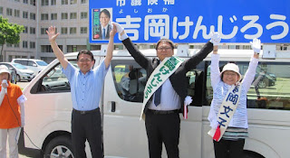 告示された美唄市・深川市の両市議選挙の応援にまわりました。きらめく水田が目に映るコメどころの両市。やっぱり第一次産業を支えてこそ、北海道は元気になると再確認です。