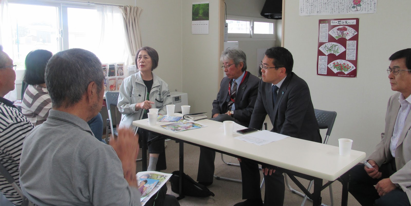 仮設団地での自治会活動で、ご尽力されている現状もうかがいました。高齢者の徘徊や「突然ラジオの音を大きくする」ことが起きて、それでも「いちど助かった命だから、みんなが新しいスタートに立てるまでは」と見守りをされていることなど、本当に頭が下がる思いで話をうかがいました。このようなご尽力に政治や行政が応えられるようにしなければと、つくづく感じました。