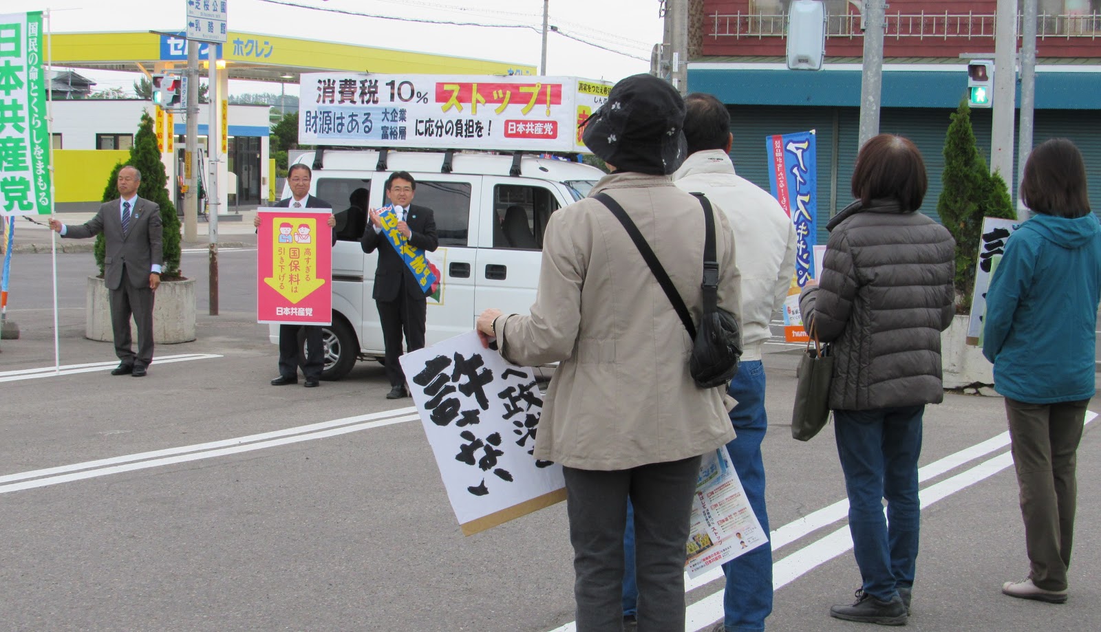 大空町東藻琴では、お店の駐車場を貸してもいただき、多くの方が話を聞きに来てくださったのは嬉しい限りでした。信号待ちの車から窓を開けて話を聞いてくださる方もいて、注目の目線も熱い! 公示も迫っているからか、どの町でも関心深く聞いてくださる方が増えている感じがします。
