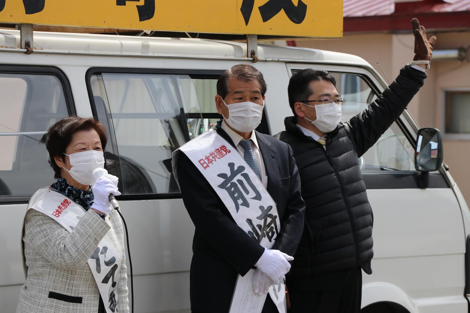 ましてや新型コロナウイルスへの不安が広がるなかで、身近な病院の大切さを町民みんなが実感しています。旗手さんも前崎さんも、命と健康を守ろうと強調して訴えられ、演説先では応援の方々も駆けつけてくれました。