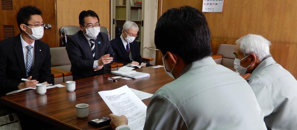 先だって余市町農協にも足を運びました。有田均組合長と田口正幸参事が応対してくださり、安久荘一郎・大物翔の両町議とで新型コロナウイルスの影響をうかがいました。余市町はワイナリーも増え続けてきている、果樹栽培が盛んな町です。