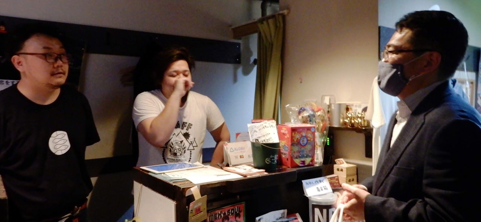 私が足を運んだのは札幌市の居酒屋「がりや」さん。入店してすぐに「学生弁当無料!」のチラシが目につきます。同店も売り上げが大幅に減少し、アルバイトの学生に休んでもらわざるを得ませんでした。「マスターも気にかけていました。そこに学生支援の話があったんです」と、同店スタッフが教えてくれました。