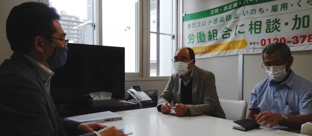 「雇用調整助成金の前払いや、労基署などでの専門家の増員を急いでほしい」と木村さん。休業手当は平均賃金の6割以上とされますが、最低賃金で働く非正規労働者にとっては6割では生活もできないため改善を、とも強調されました。聞いた内容は、しっかり反映させていきたい。解雇規制や労働者派遣法の抜本改正など、一刻も早く前へ進めなければ。