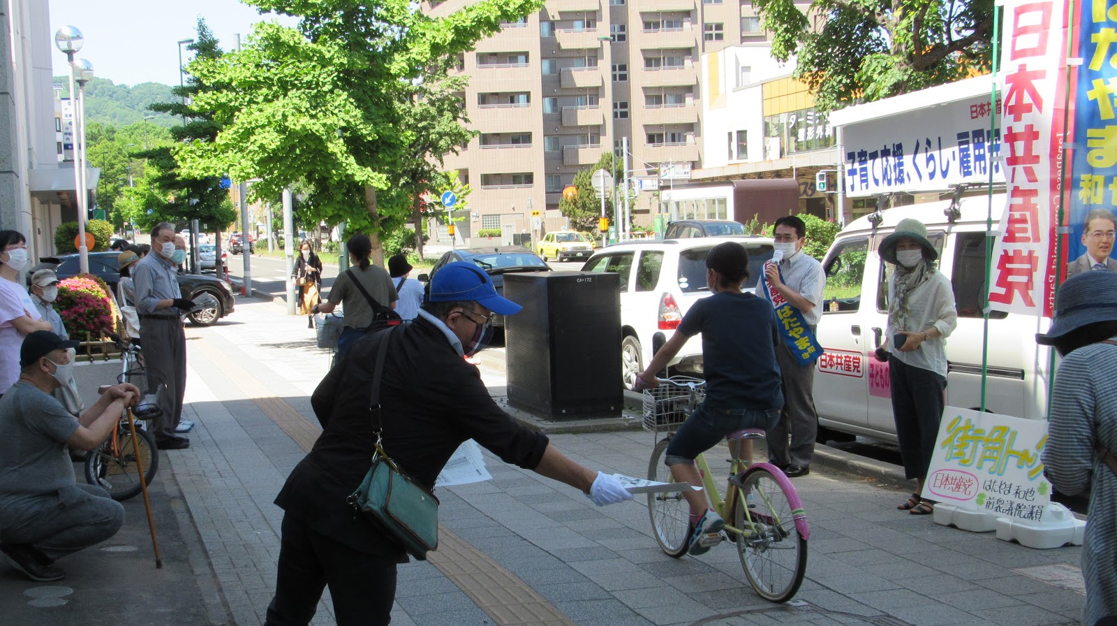 「難病を抱えています。感染防止のためにも検査を増やして」「給付金が遅くて、近くの飲食店が閉店」--街角からも切実な要望が次々と。今日は札幌市中央区を、小形香織市議と宣伝しながら声を聞きました。午前のうちに30℃になったかと思えば、夕方には叩きつけるような夕立に見舞われました。まだ6月前半なのに、もう夏のような感じ。全国的にも暑さが広がっているし、でもマスクは手放せないのですから、熱中症にはお気をつけくださいね。