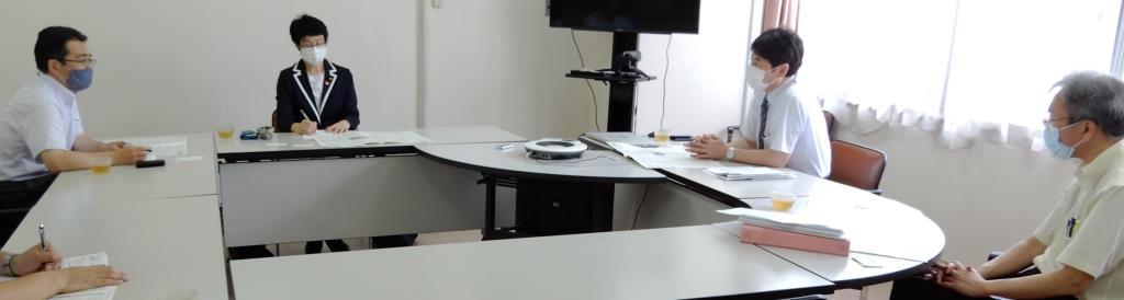 「そもそも医療分野はギリギリの運営でした」と佐藤秀明専務。社会保障抑制路線によって病院や介護施設は余裕のない経営を迫られ、それを従事者の善意と献身で乗り越えてきたのです。この思いに政治が応えるべき。検査体制の拡充なども話題になり、紙議員ともども、しっかり現状を反映させていくことを約束しました。