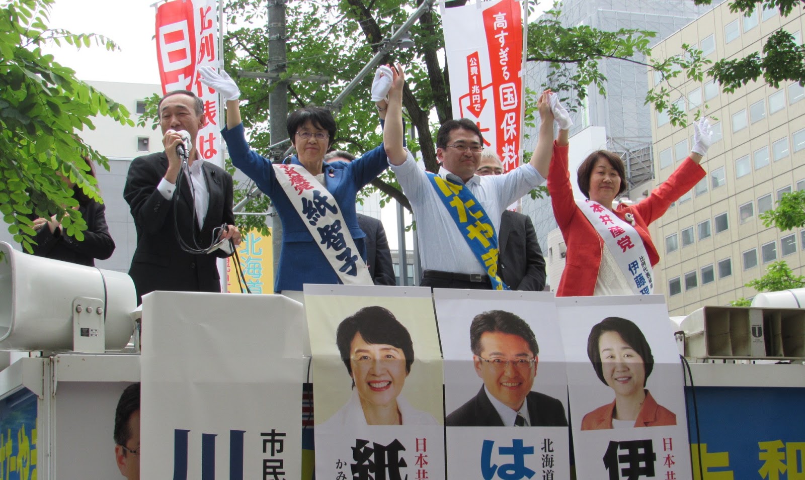 第一声には「戦争させない市民の風・北海道」の川原茂雄共同代表が、応援のスピーチをしてくださいました。以前に書いたように、新社会党北海道本部さんからも推薦をいただきました。市民と野党の共闘の流れは止まらないし、日本共産党の躍進と私の当選で、その流れをもっと強めたい。