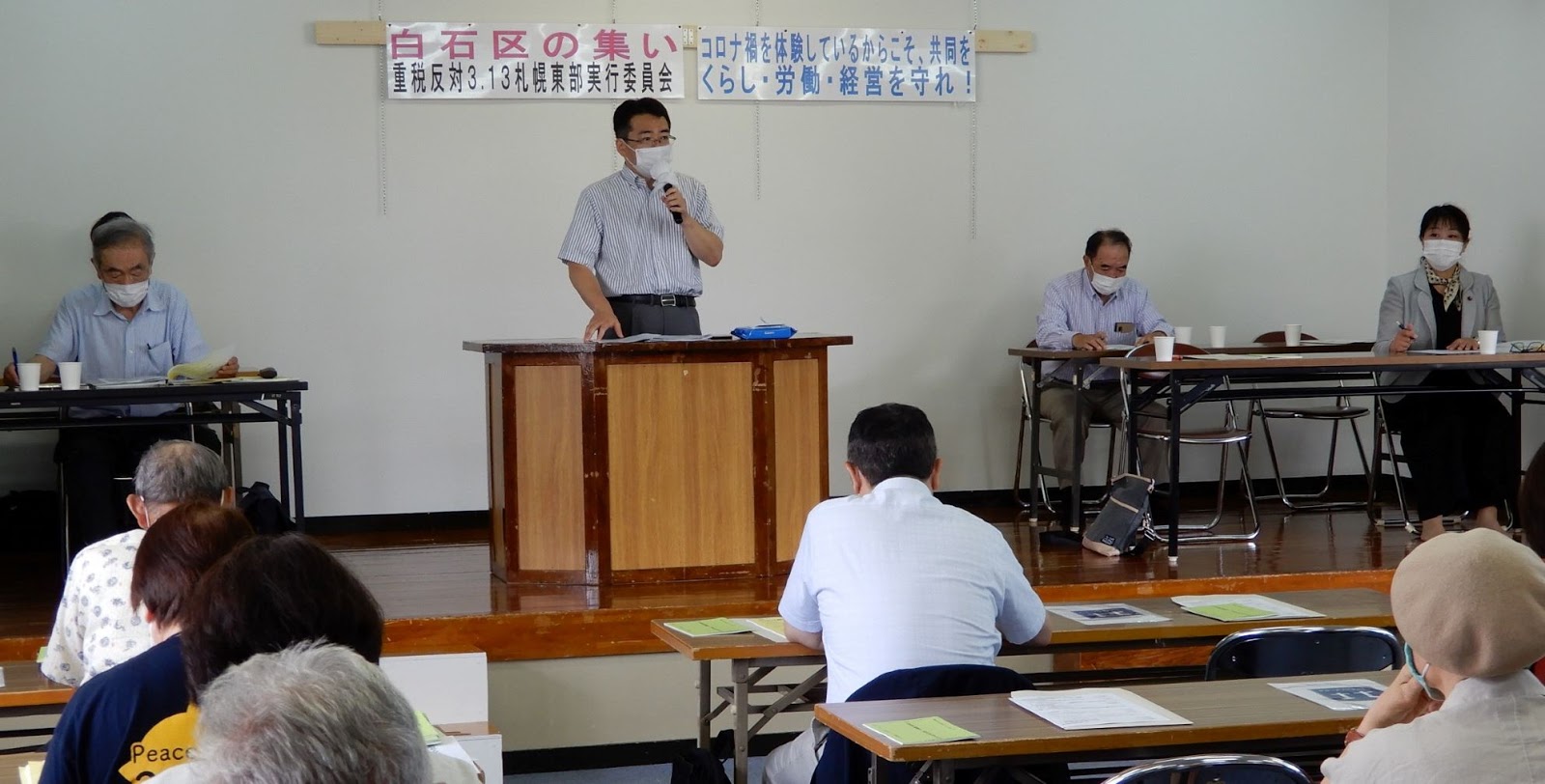 くらし・労働・経営を守れ! 各団体による「重税反対3.13札幌東部実行委員会」の白市区の集いは、3密を避けた人数ながら熱を帯びました。コロナ禍を体験したからこそ、新しい社会と政治をつくりたい思いがあふれているのです。