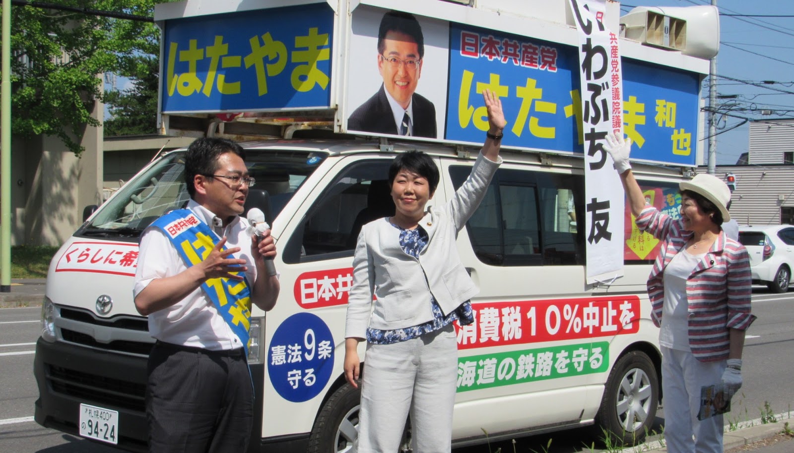 体感的には30℃を超えていた感じの旭川市。岩渕友参議院議員・真下紀子道議から、暑さに負けるなとばかりに応援ももらいました。力が入りました!