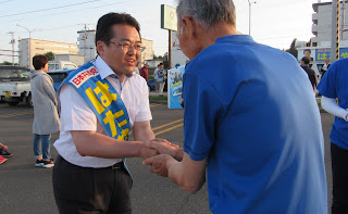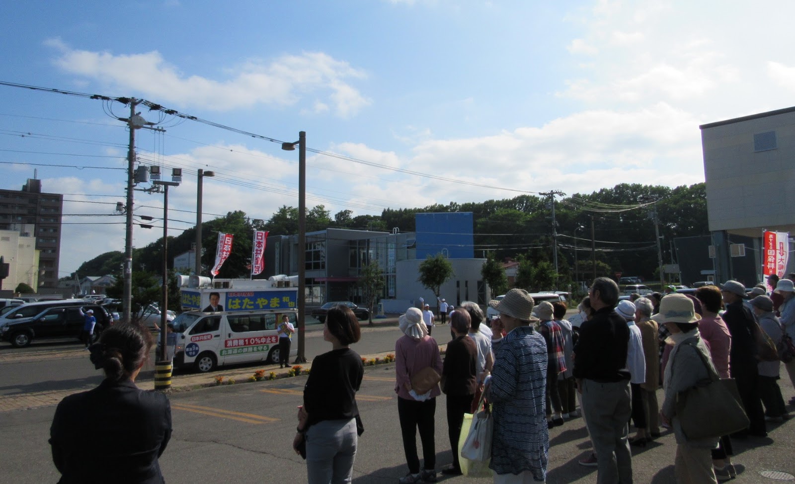 演説箇所には入ってなかった南富良野町でも車を止めて、3年前の連続台風で受けた被害のこと、JR根室本線の復旧こそ最優先で取り組むべきことなど訴えました。当時のことが頭に浮かびました。空知川の堤防が決壊して、避難場所の会館1階も水でぶち抜かれていたこと、牧草ロールが町のなかに流され転がっていたことなど、これで亡くなった方がいなかったのが不思議なくらいでした。