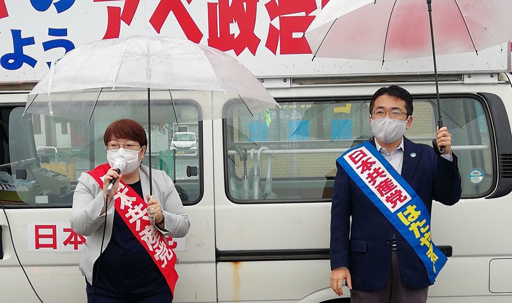 苫小牧市は私が中学校教諭を務めていた町で、今日も「さっき娘が(いま住んでいる町へ)帰ったばかりだったよ」(残念!)と教え子のお母さんから声をかけていただきました。思わぬ出会いは松橋さんにもあって、「勇気を出して」宣伝カーへ駆け寄ってきたという女性は、松橋さんが幼稚園に通っていた時の先生とのこと。マスク越しに松橋さんの笑顔が見えました。