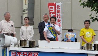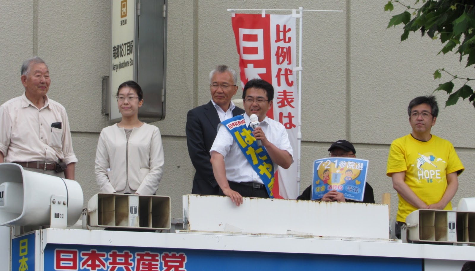 市民と野党の共闘アクションが開かれただけでなく、各地の「市民の風」のみなさんや他党市議さんが来てくださったりして力強いのです。みんな安倍政権に怒っていて、何としても変えよう!という思いが伝わってきます。何としても応えたい。共闘アクションでマイクを握ったのは、党労働者後援会代表委員の三上友衛さん、はたやま応援市民クラブ白石の福田敏夫さん、新社会党北海道本部書記長の小柳政行さん、前自由党北海道から渡辺なつみさん、そして「市民の風」からは小林久公さん。こんなに心ひとつに立ち向かっているのかと思うと、胸がいっぱいになります。