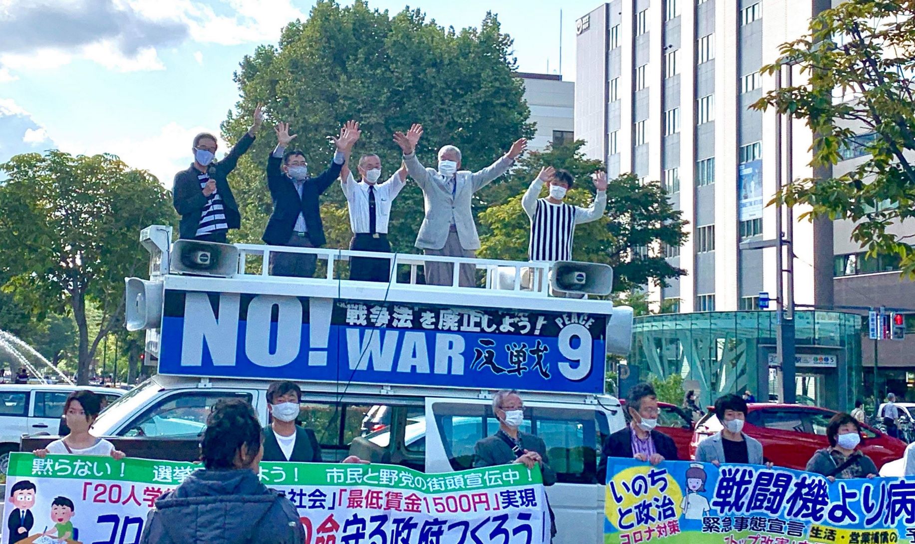 「杉田水脈議員の女性蔑視発言は絶対に許されない」(新婦人・石岡さん)、「今こそ少人数学級を実現するチャンス」(高教組・尾張さん)、「大学の退学まで検討する学生を政治は救わないのか」(民青・宮内さん)、「八雲病院廃止で約70名が職に就けない。こんな政治を変えたい」(医労連・鈴木さん)など、今こそ国民の側に立つ野党の議席を大きくしようとのスピーチが続きました。