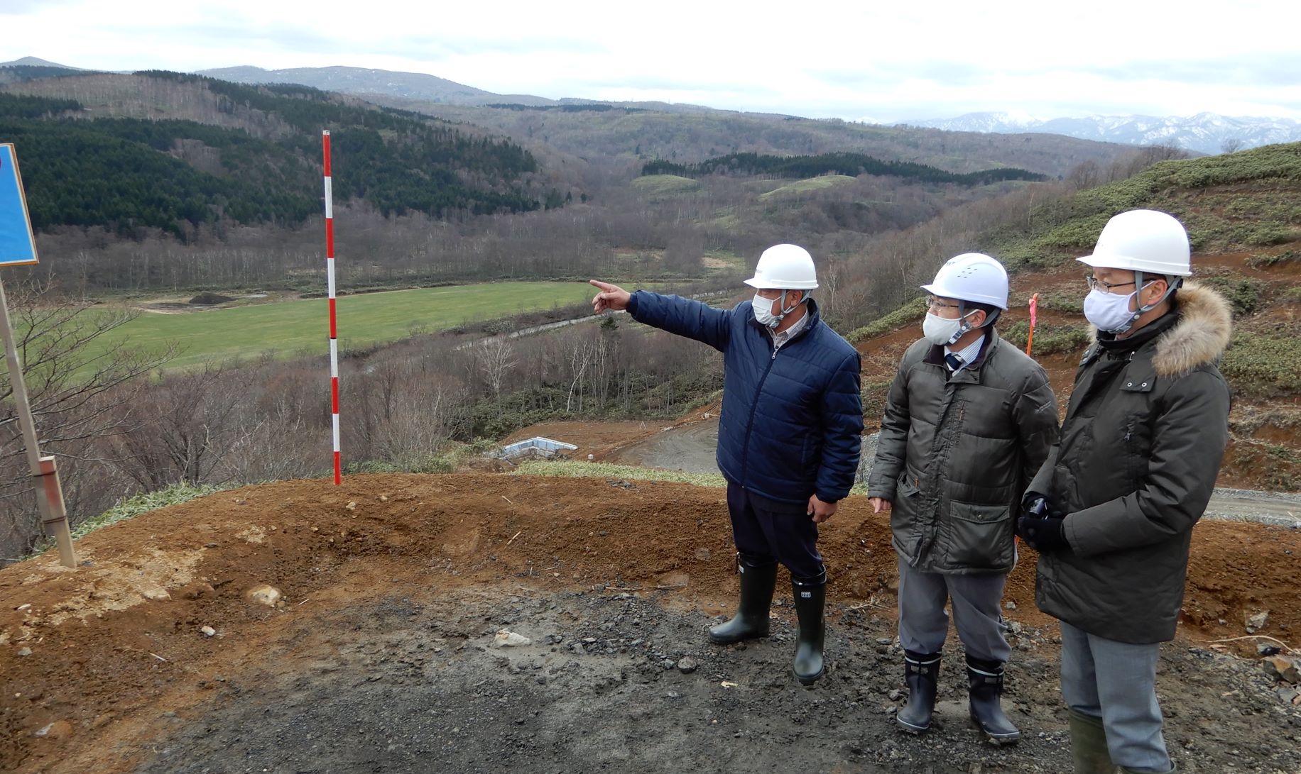 新型コロナ対策の要望を聞いてまわりながら、新幹線トンネル工事での残土置き場(黒松内町)への調査にも足を運びました。環境基準の何と270倍というヒ素が、渡島トンネル工事から出てきたことを鉄道・運輸機構が認めたこともあり、あらためて実態をとらえる必要があると思ってのことです。岩沢史朗・菅一の両町議が同行してくださいました。
