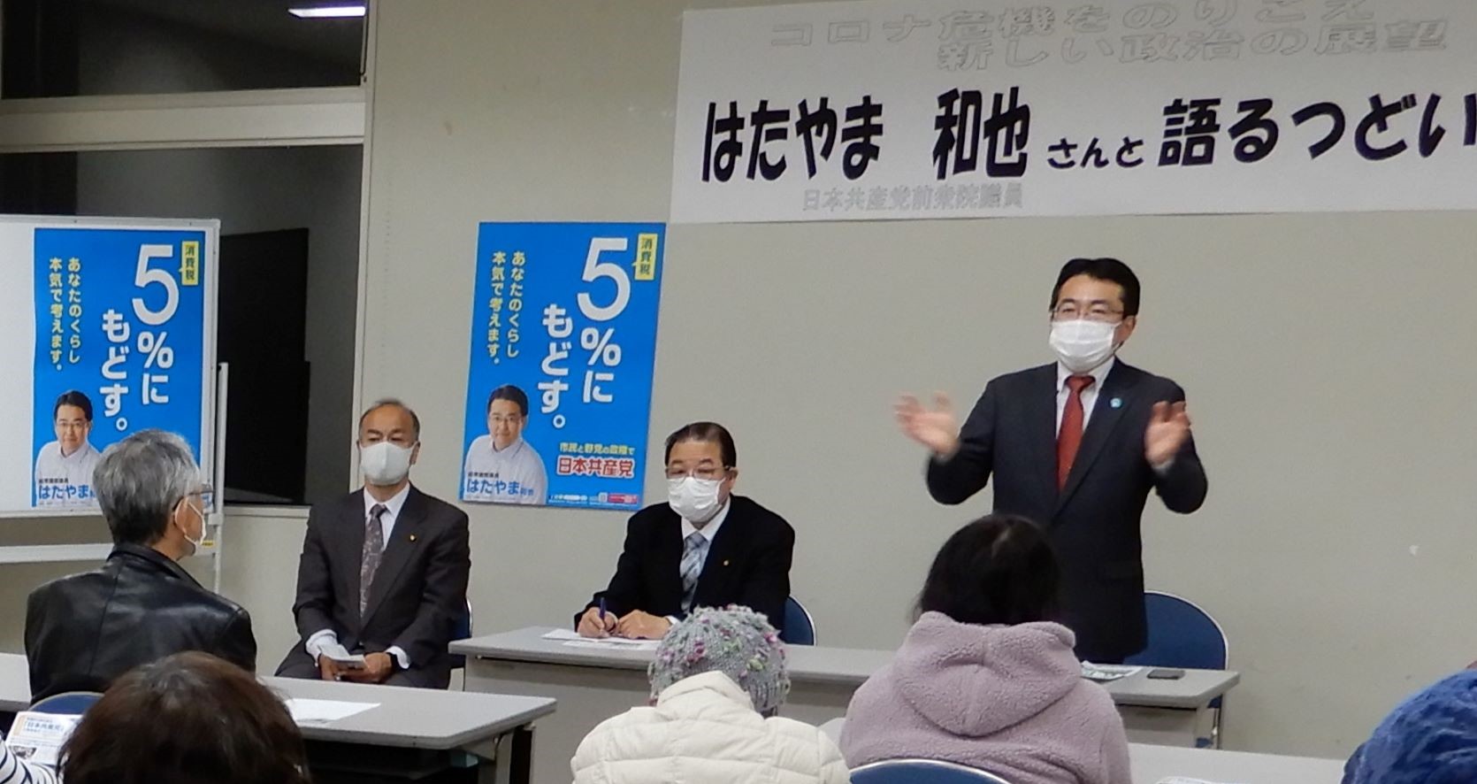 網走では松浦敏司・村椿敏章の両市議と街頭宣伝の後、換気をしながら「語るつどい」。携帯料金が下がることとデジタル化推進の関係、大学生の困窮、学校での「1年単位の変形労働時間制」についてなど、短い時間ながら多くの意見や質問が出されました。しっかり反映していきたい。
