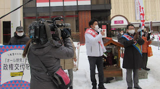 吉川貴盛・元農水相が辞職し、来年4月の道2区補欠選挙が決まりました。すでに立候補を予定している平岡だいすけさんと緊急宣伝。子どもたちがリーフを手に「この人だ」と話題にしたり、遠くから拍手で応える方の姿もあり、注目を集めました。