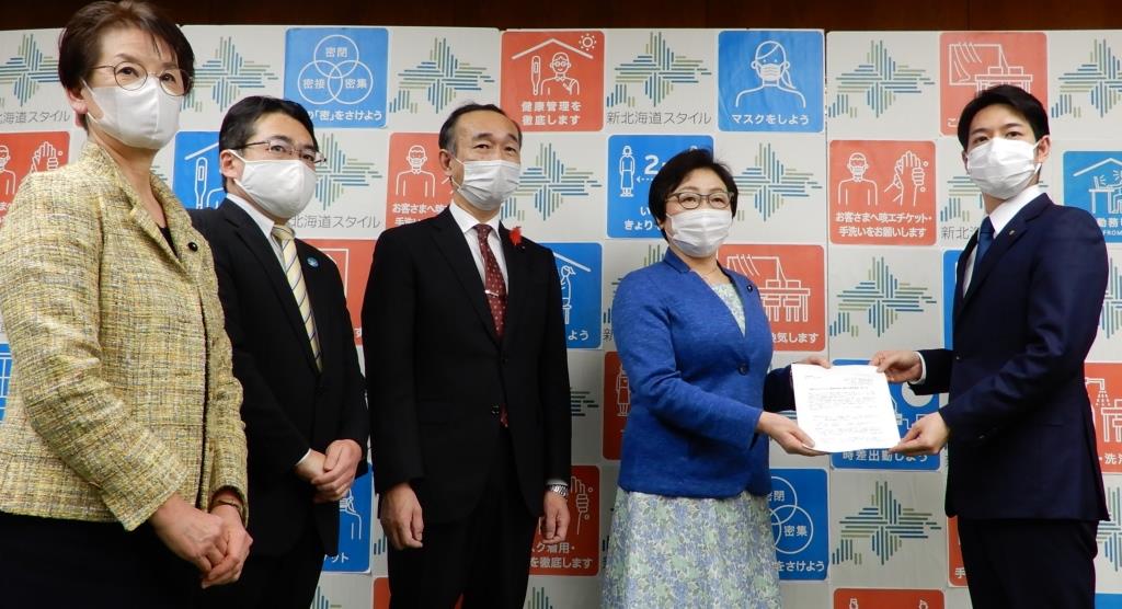 要望項目は大きく10項目で、▼医療機関・関係者への支援の早期具体化、道独自の医療機関への減収補填、▼社会的検査の対象を広げたPCR検査の実施、検査機器・検査体制を急いで拡充すること、▼北海道療育園への看護師・介護士等の早急な派遣、▼宿泊療養施設の設置、▼休業・時短要請への補償、▼雇調金の特例措置や持続化給付金などの延長や複数回支給の実施を国に求めること、▼生活困窮者への相談体制と支援の抜本的強化-ーなどです。
