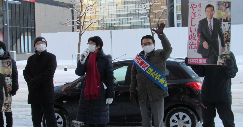 今日も寒さが厳しい北海道ですが、北風のような菅首相の冷たさに、どれだけの道民が苦しめられていることでしょう。ぬくもりの政治をつくる中心として、日本共産党が太陽のような存在にならなければと決意も新たになります。ふだんよりチラシを受け取ってくれる方の数も心なしか多かったような気がします。