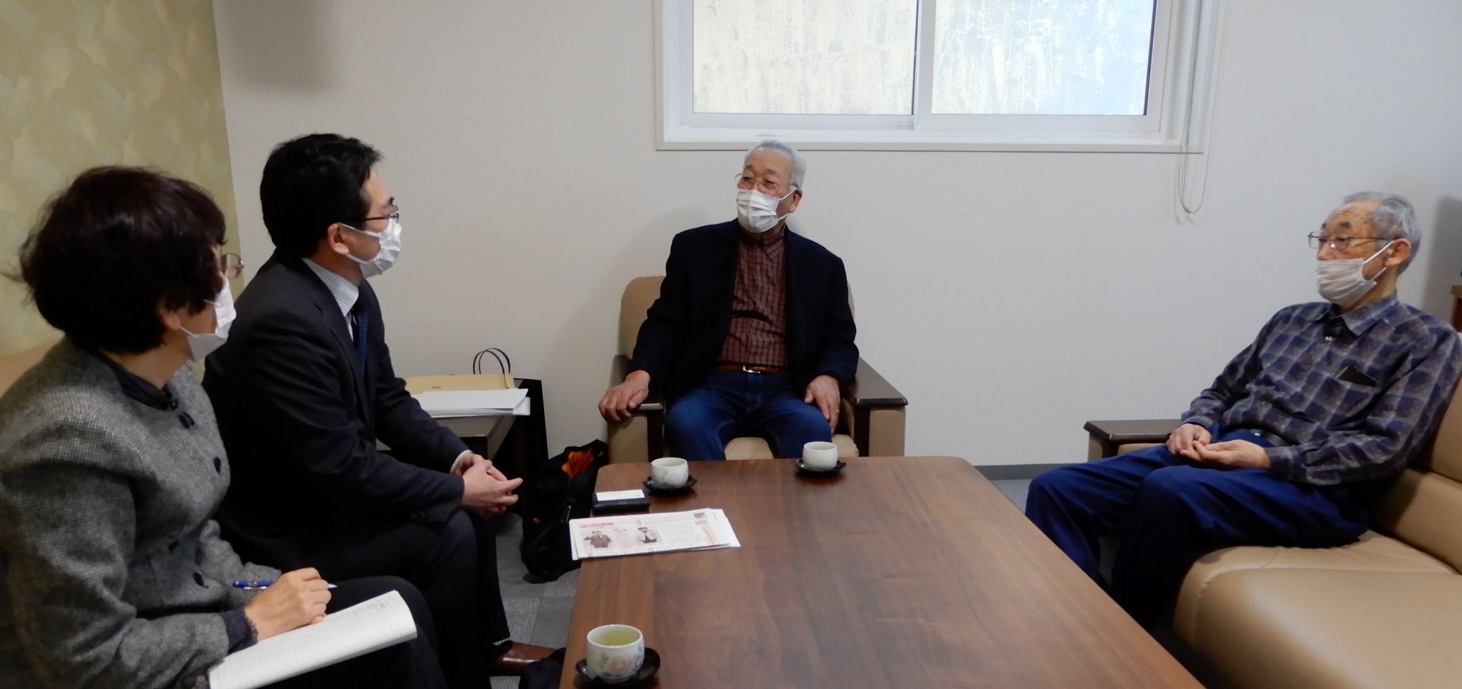 長万部では木幡正志町長、佐藤英代副町長、近藤英隆教育長が懇談の時間を割いてくださいました。木幡町長は「現職のときに部屋へ要請に行ったこともありますものね」と応じてくださり、町の課題やコロナ禍の話と進んだときに、「波の音しか聞こえないんだよね」と話されました。