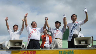 参院選から連続してたたかっていることの疲れとあわせて猛暑に襲われたなかでも、候補を先頭に党員・後援会員のみなさんも大奮闘。私も「住民の願い実現の力となる3議席」「安倍政権の悪政に立ち向かう3議席」として応援演説。菊地葉子道議もマイクを握りました。引き続き住民の願いを実現できるように、何としても3議席を確保してほしい。