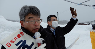 地吹雪もひどくなってくるなか、スタッフの安全運転で美瑛町へ。総選挙勝利に向けて、増山和則町議はじめ党支部のみなさんとの懇談も熱を帯びました。ある団体役員の方が増山町議に「テレビで聞けば聞くほど、共産党の言ってることが正しいと思えるようになってきた」と募金まで寄せてくださったといいます。主張と同時に、ふだんから地域に根ざして地方議員と党支部が活動してきた反映がきっとあるはずです。行動が見えるからこそ、主張も受け入れてくださっていると思うのです。