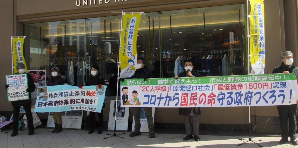 北海道2区補選と同じく4月にたたかわれる長野県参院補選では、野党統一候補の政策協定に「核兵器禁止条約を批准」と盛り込まれました。北海道でも同じような旗印をもって選挙をたたかいたいし、そのためには政党間の協議も真剣に、そして世論を高めなければ。実現へ一歩手前の状態で、試されているのは野党の本気度です。