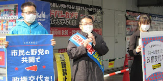 いよいよ明日が道2区補選の告示日。今朝の定例宣伝でも松木けんこうさんとの協定内容を紹介しながら、政権交代への流れをつくろうと呼びかけました。明日からも引き続き力を尽くしたい。