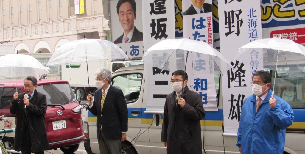 感染拡大防止に国民へ自粛を要請するなら、十分な補償が必要だとの声を菅政権は本気で受け止めているのか。医療機関や高齢者施設などで働く方へ、くりかえし検査をできるようにもするべきです。医療従事者や中小業者、多くの国民を見捨てるような政治は、とにかく早く変えたい。2区補欠選挙で、しっかりと示さなければ。まわりの方に投票へ行くことを呼びかけましょうと、私からも訴えました。ぜひブログをお読みの方も、道2区(札幌東区・北区)はもとより長野県・広島県への知人・友人へ、お声がけをお願いします。