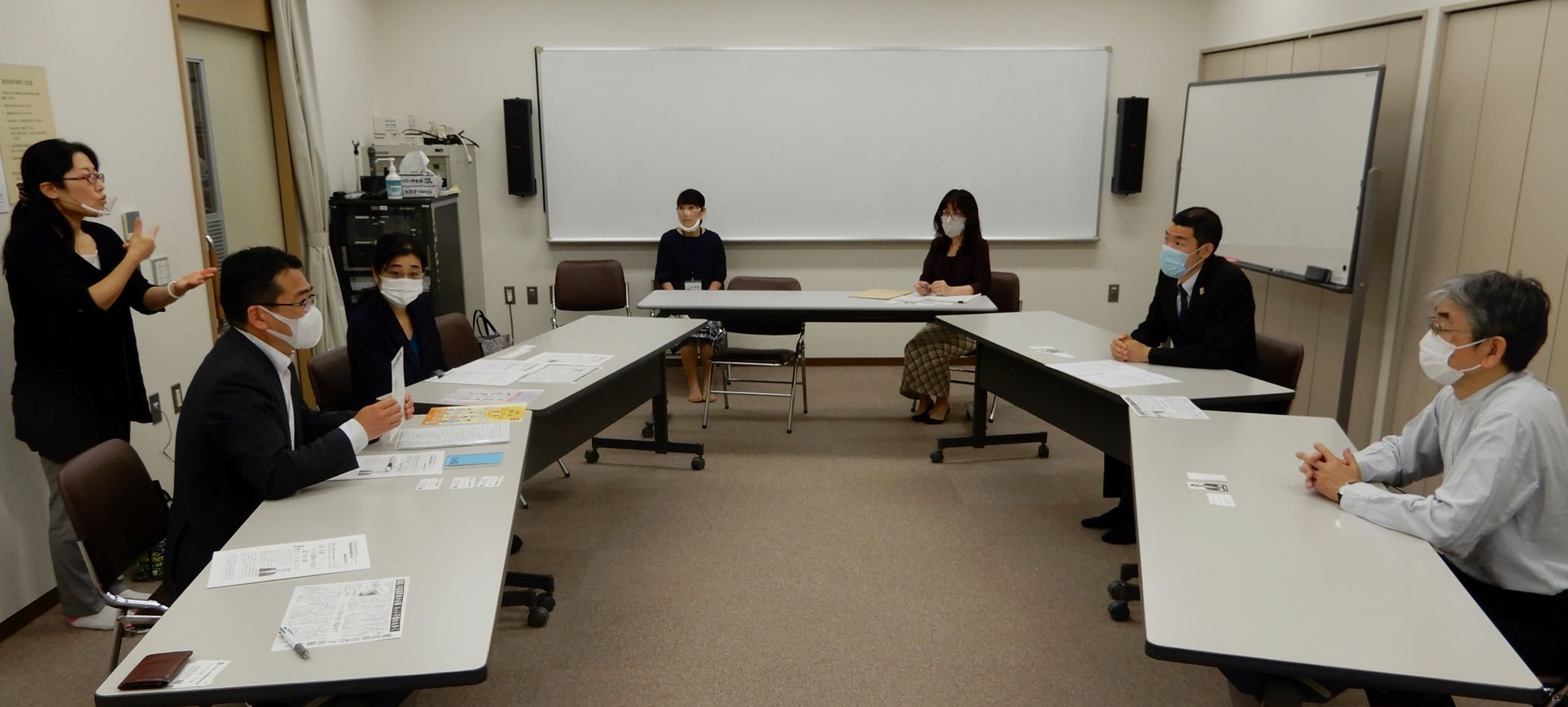 そもそも手話通訳者の身分保障が低く、養成が遅れている実態を指摘されたのは渋谷雄幸理事長さん。ボランティア登録の方はワクチン接種の対象ではありませんし、業務中の感染も労災とはなりません。国からも保険加入を推奨されていますが、実際の掛け金と支払い金額を見ると十分でもない現状も。「このままでは意思疎通を支援する事業が成り立たなくなる。国がもっと社会保障の分野を大事にしてほしい」と訴えられました。手話通訳者を正職員として雇用している自治体もあるといいます。