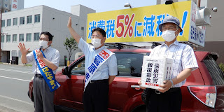 今日は北見市。道12区・菅原誠予定候補も元気いっぱい、菊池豪一・桜井由美子の両市議も駆けつけて、私も訴えに力が入りました。五輪競技が始まる一方で、東京は爆発的に感染者が増え、札幌市でも緊急事態レベル(秋元市長)の状況にまで至っています。