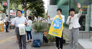 他にも農民連、新日本婦人の会、高教組、自由法曹団などと相次いで意見を交わしましたが、少ない時間ながら中身は濃密。それだけ安倍政権のもとで行きづまりと反動的打開が目立ってきている証拠だと思います。北海道の運動と手をつないで、国会活動にも反映できるように私も力を尽くしたい。昼には消費税増税ストップを!と、そろって街頭宣伝。3人がマイクを握るのは、あまりなかったことかもと写真を見ながら感じました。署名に応じる方、じっと話を聞く方などの姿もありました。このまま増税したら、くらしと経済へ大きな打撃になると懇談を通じて感じただけに、3人とも訴えに力が入ること!
