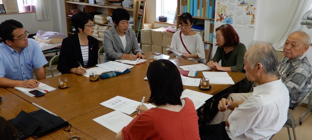 各界との懇談は北海道社会保障協議会、道生活と健康を守る会、北商連と。医療や介護、障害者福祉など切実な実態や事例の紹介を、胸を痛めながら聞きました。地域訪問のなかで「生活が苦しくて身投げしようと思ったけど、体の悪い夫を残して死ねなかった」という女性に会い、無料低額診療を受けることができて命がつながった話を聞きながら、もっと救える命があるはずだ、と。介護や福祉現場での人手不足が今日も話題にのぼり、「加算による処遇改善よりも基礎単価を上げてほしい」などの話をうかがいました。事例が具体的なだけに、国への要望も具体的です。紙・岩渕両議員とも、しっかり取り組む決意を述べました。
