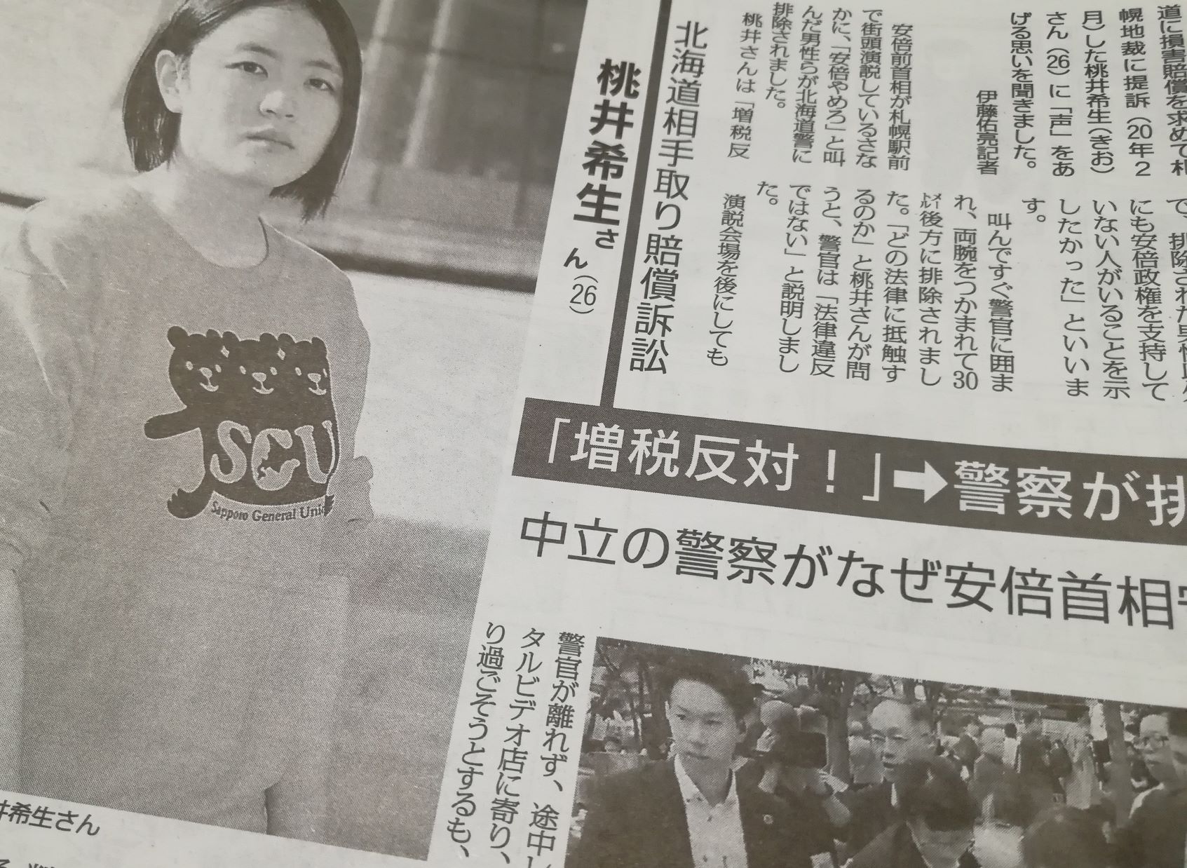 今日12日号の赤旗日曜版に、2019年の首相演説ヤジ排除事件と国賠訴訟の記事が載っています。一昨日の尋問では、警察官の言葉に傍聴席がざわつく場面があったと、傍聴したフリーライターさんがツイッターに記していました。この回答は何だ、です。