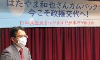 法律事務所後援会では「はたやまさんなら、どう質問したのだろうと、この4年間は思ってきた。必ず議席奪回を」など熱い激励もいただきました。質問コーナーの時間もあって、私に初めて会った方からは「共産党のアピールポイントは」との質問も。