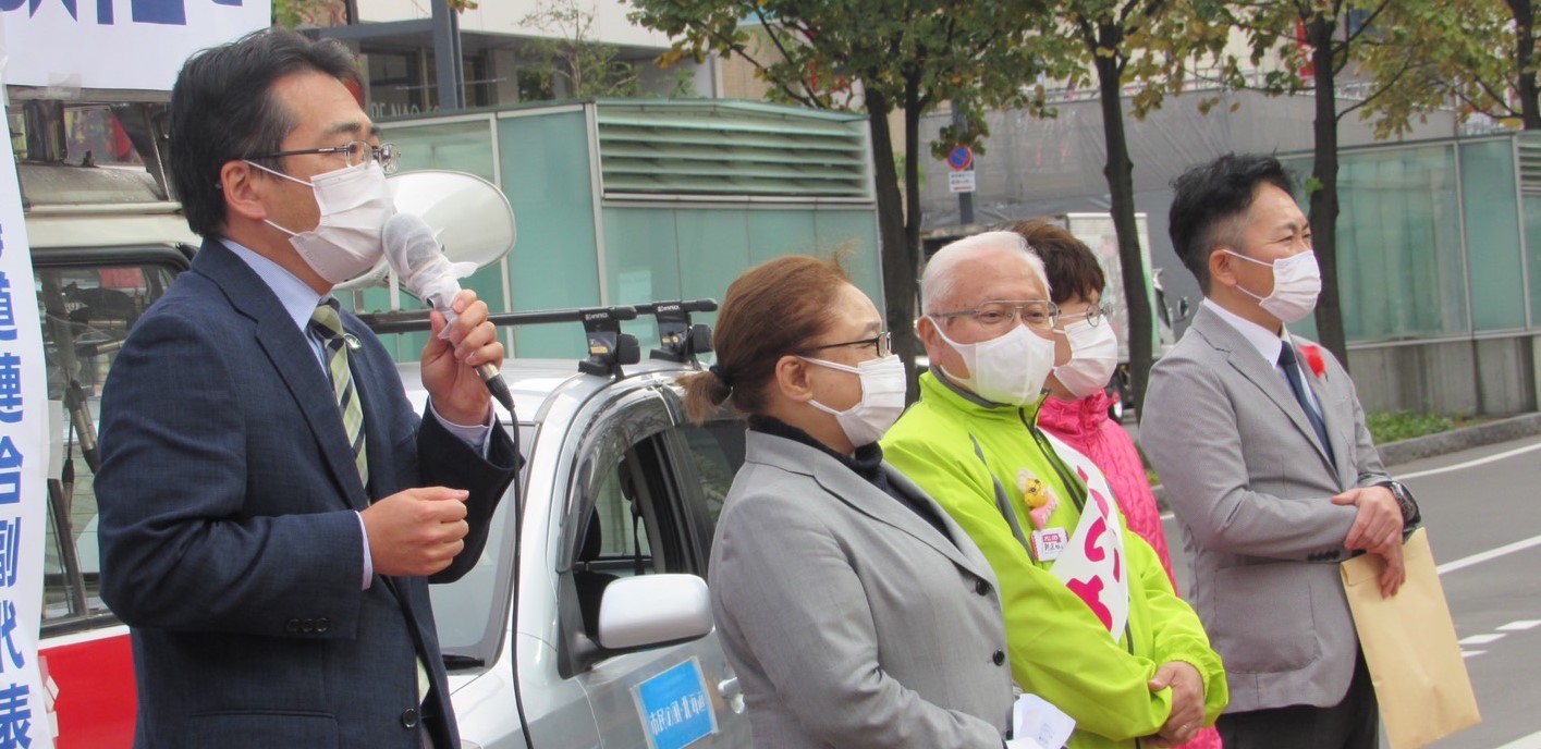 市民の風・北海道による「市民と野党の共同街頭演説会」。冷たい風に負けない熱気! いろんな苦労を経験したからこそ、何としても新しい政治に変えたい。まさに1日1日が勝負です。