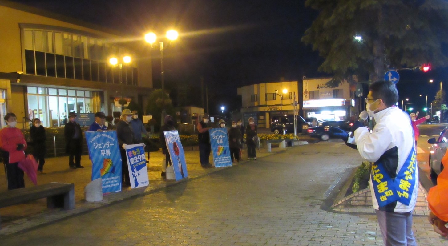 JRが運休になったためバスに飛び乗り、洞爺湖町で選挙カーと再合流し、伊達市・室蘭市とまわりました。マイクを握る前に、洞爺湖観光協会などで聞いた話も思い返しました。有珠山噴火から温泉街が復興する、そのシンボルとなったのが毎夜の湖上花火。それがコロナ禍で中断となっても「必ず、また花火を上げる」との熱い思いに応えなければと思ったのです。