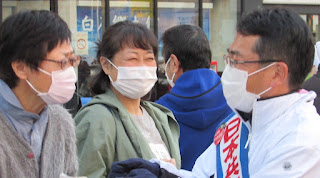 いよいよ選挙期間も折り返し、小池晃書記局長の応援も受けて議席回復へ猛追です。今日は熱い反応も、ずいぶんと寄せられました。自転車で配達する某社の方も「マニフェストください」と、スタッフに声をかけたとか。励みになります。