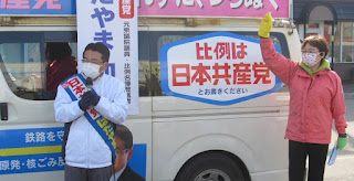 だから胸を張って小選挙区は菅原まことと書いてほしいし、もちろん比例は日本共産党。会場はコロナ感染防止もあり限られた人数でしたが、一体感ある個人演説会になりました。帰り際に次々「がんばって」と声をかけられたことにも、期待の大きさを実感しました。菅原さんとは明日もいっしょにまわります。