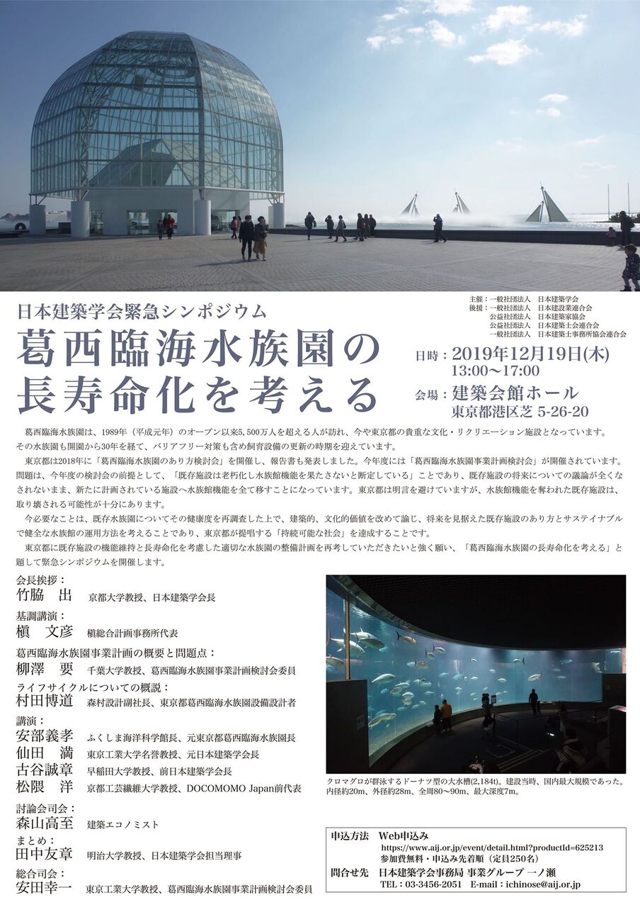 日本建築学会でありました。先生方は、“あり方検討”の頃から憂慮し、““ハコモノ”更新構想”→世界的“巨匠”「谷口 吉生作品」の本館から水族館機能を奪う結論ありきの““ハコモノ”事業計画検討”へとすり替わっていくのではないかとロックオンされていたのであります。
